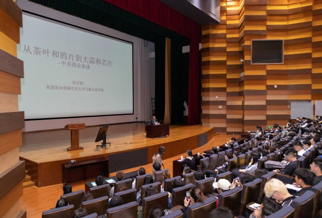 “中美之间的贸易关系,在美利坚立国之前就已经存在了。1773年,美国还是英国的殖民地,想要购买中国的茶叶和瓷器,必须通过英国东印度公司作为中间商,这引起美国人的不满。美国独立战争的导火索——著名的波士顿倾茶事件,倾入大海茶叶正是来自中国福建……”4月21日下午,在我校大型系列讲座“桥见大咖”上,美国南加州大学马歇尔商学院金融与商业经济系教授陈百助博士以“从人参和鸦片到大蒜和芯片”为题,从中美贸易历史渊源切入,讲授自己对中美贸易与中美关系的思考。我校董事长周星增、副校长郑祥展、校长办公室主任王邦永出席,学生代表听取讲座并与教授现场互动。校党委副书记夏雨主持。