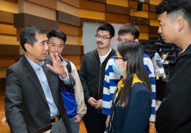 讲授之后,陈教授就一些专业问题与现场积极提问的同学进行了探讨与交流。他还分享了自己求学、写书的经历,希望同学们在大学期间注意培养自己的思维方式,透过社会现象的观察思考社会本质,以积极的心态面对人生挫折与困境。