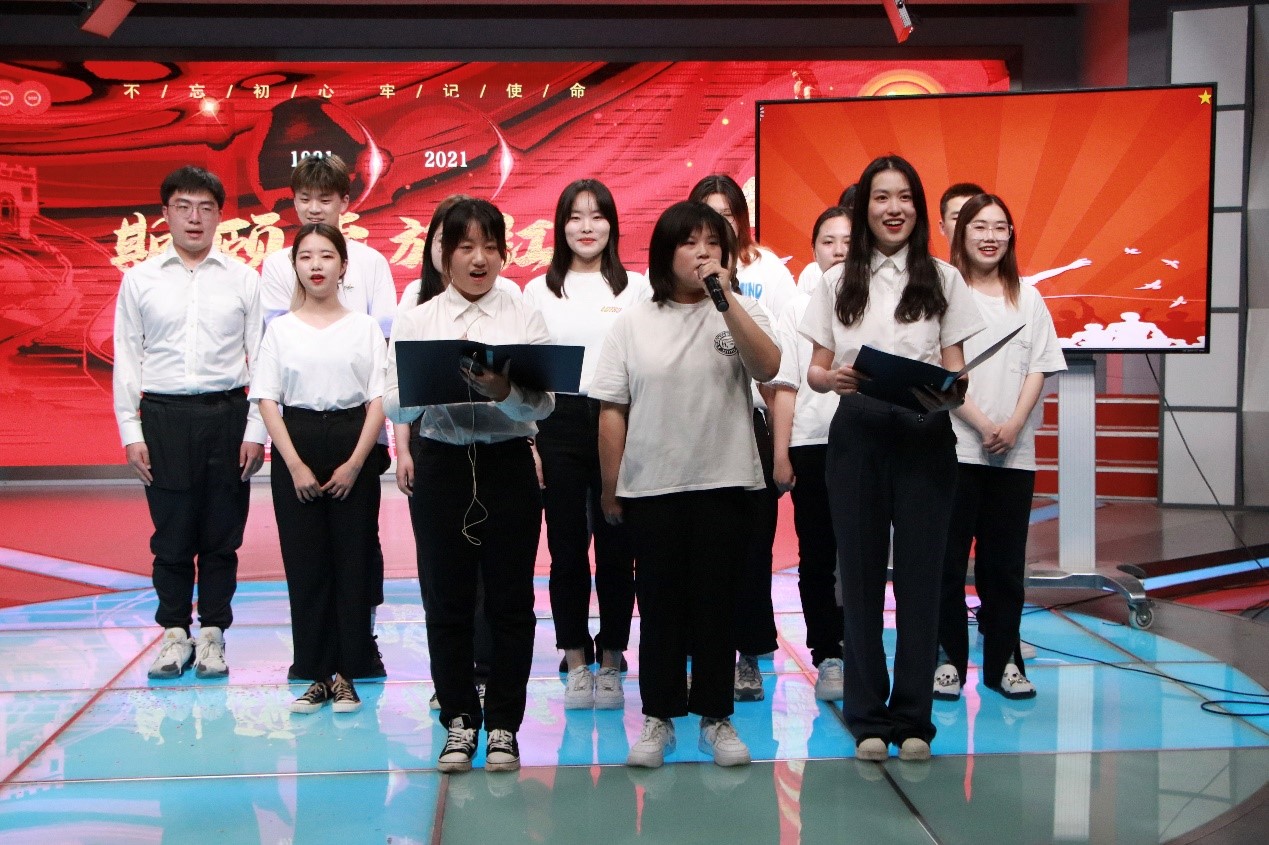 学院辅导员组带来了《唱支山歌给党听》,教师们用嘹亮的声音唱响了对中国共产党百年华诞最美好的祝福。