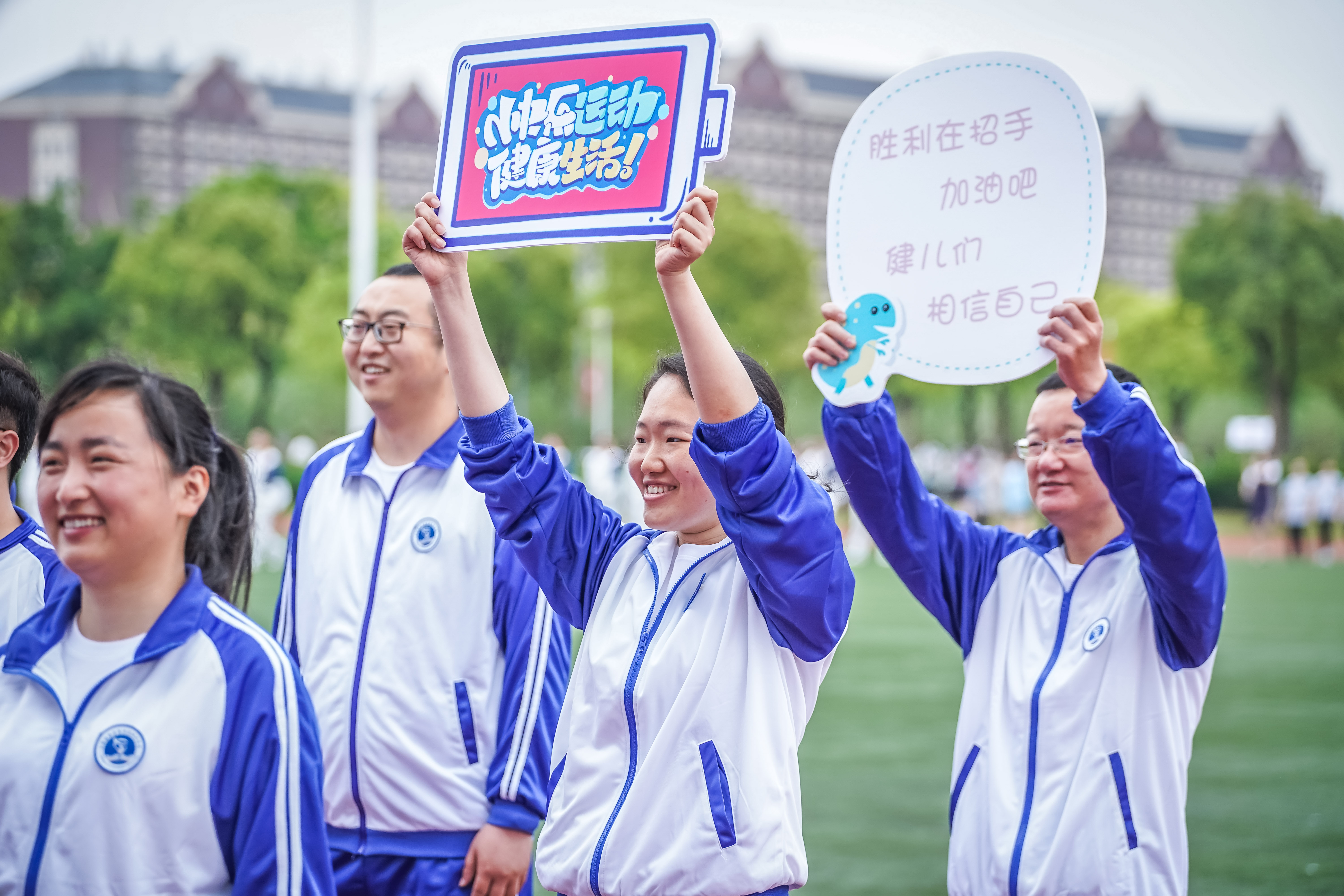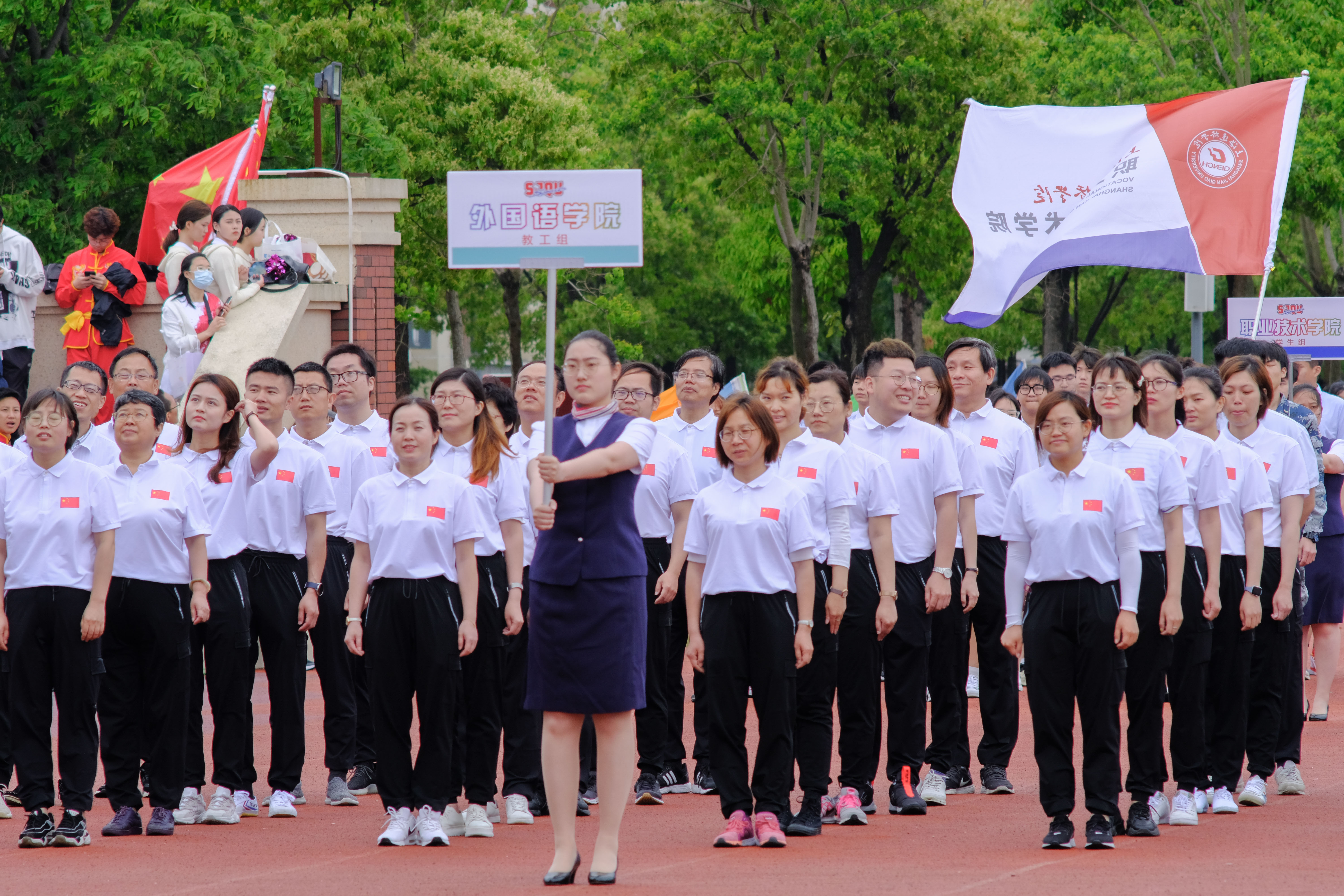 激昂的进行曲拉开运动会的序幕,各学院运动员方阵和教职工代表队依次入场以整齐的步伐,饱满的热情,展现建桥人的飒爽英姿。当天,教职工与学生代表还进行广播操表演。