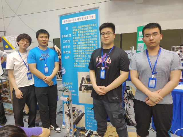机电学院学生制作的两项一等奖作品分别为“基于SLAM控制的智能消毒小车”和“基于磁珠法的核酸提取器”。前者将无人导航SLAM系统与自主消毒系统相结合,实现医院、学校等公共区域无人化自主消毒功能及高危地区的远程遥控消毒功能;后者设计了一款基于磁珠法的自动化核酸提取器,相比起现有的离心法核酸提取设备,操作步骤简单,使用环境要求较低,同时极大的提高了核酸检测效率,适用于疫情环境下大规模核酸检测的现实需求。