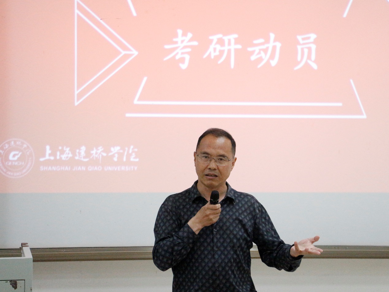 魏春龙副教授讲解了考研的相关内容。他强调考研就像是在高速公路上奔跑,考上研究生,实现从本科到研究生、从民办到公办的转变。考研要切合实际的报考、研究考研真题、坚持不懈的努力。