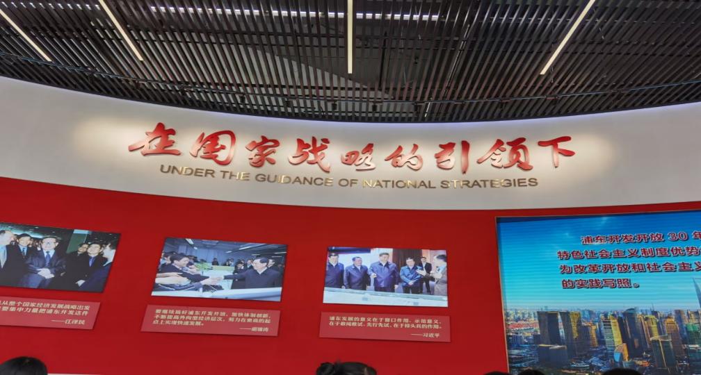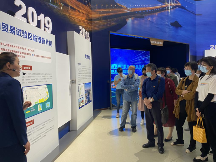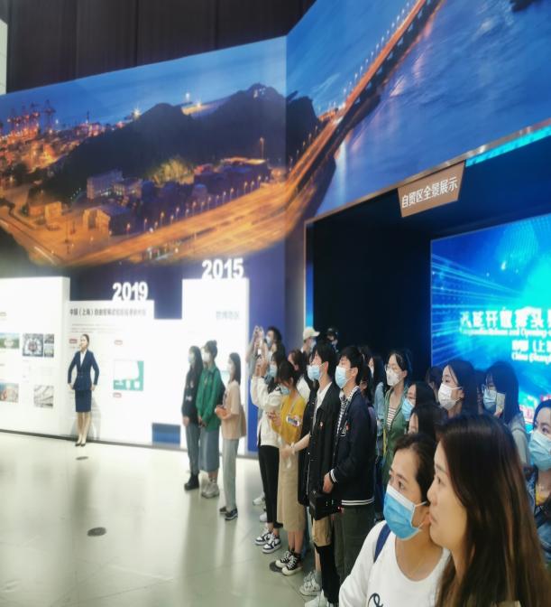 在讲解员的引导下,教工和学生党员走进展厅,在一幅幅照片、一段段视频、一组组数据前驻足观看,回顾历史、展望未来。展厅里,一条时间轴串联起浦东开发开放30年来波澜壮阔的历程;50多项“全国第一”集中展现了浦东的大胆试、大胆闯、自主改,每一项都让浦东离世界更近;烂泥渡路的今昔对比,见证一座现代化新城的日新月异。整个展厅充分展示了浦东开发开放30年的重要历程和辉煌成就,充分展示了浦东作为上海国际经济、金融、贸易、航运、科创中心的核心承载区建设情况和中国(上海)自由贸易试验区制度创新重大成果以及日益加快的国际文化大都市建设步伐,也充分展示了浦东敢闯敢试、先行先试,推动高水平改革开放的勃勃生机和活力。