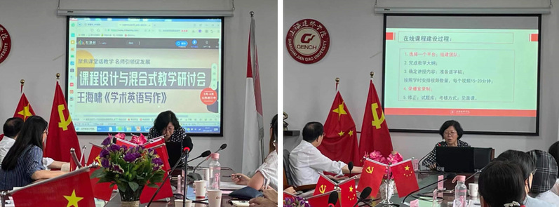 报告结束后,与会教师结合自身负责的课程对如何进行混合式教学展开了激烈的讨论,在具体课程如“大学英语”,“日语翻译”或具体问题如“线上线下分配比例”,“线上测验诚信问题”上碰撞出了火花。