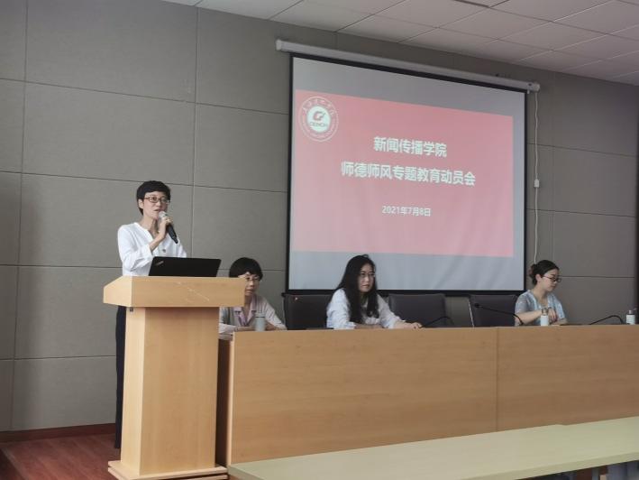 徐磊宣布新闻传播学院成立以书记徐磊、院长王梅芳为组长,副院长田欣欣、副书记吴成皓为副组长,各支部书记为成员的师德专题教育领导小组,以“明确学习、统一思想、提高认识、广泛动员、积极宣传、深入人心、全员参与”为原则,大力弘扬尊师重教的良好风尚,努力成为业务精湛、学生喜爱的高素质教师,为发展具有中国特色、世界水平的现代教育作出贡献。