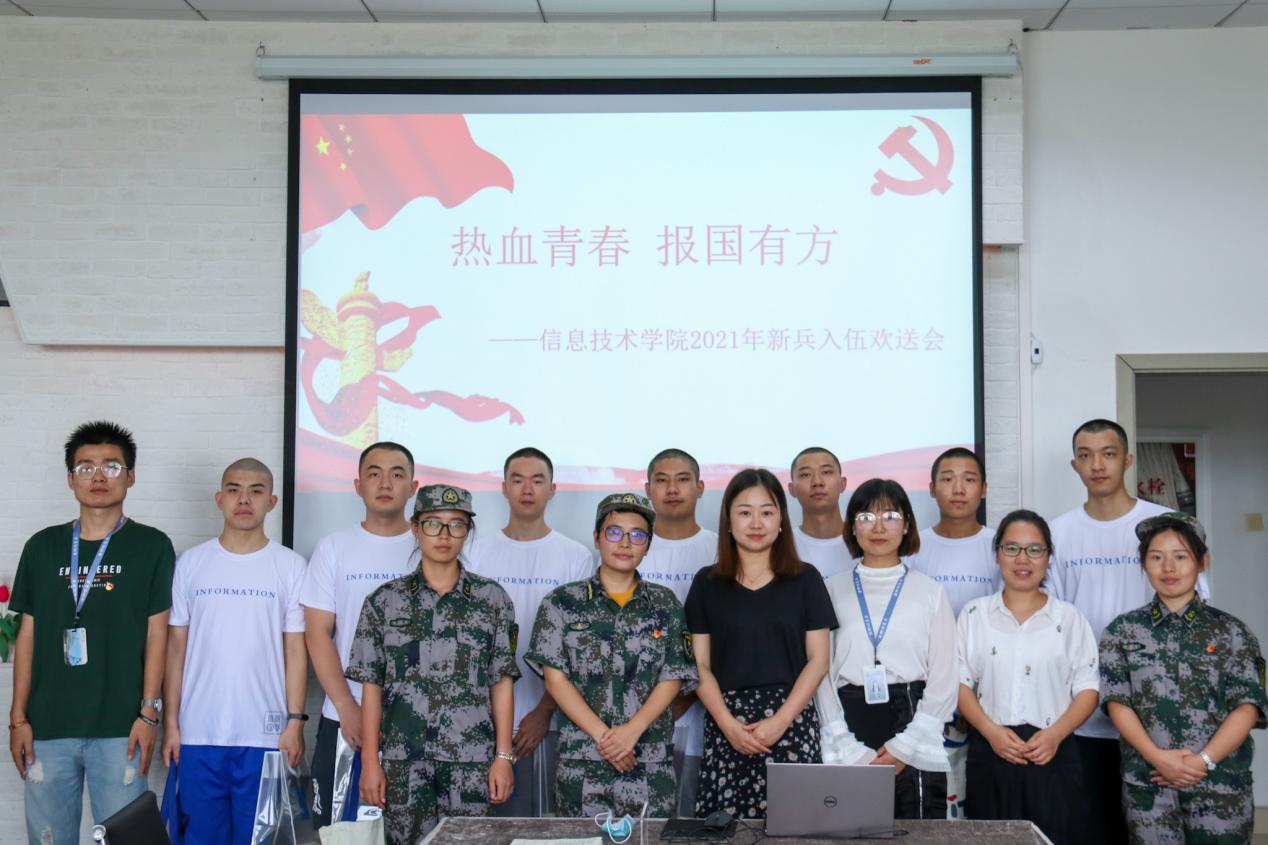 9月8日,信息技术学院举办2021年新兵入伍欢送会,为即将踏上光荣征程的7名新兵送上慰问和祝福。学院党总支书记王晨岑、副书记徐娜、入伍新兵及其辅导员参加欢送会。
