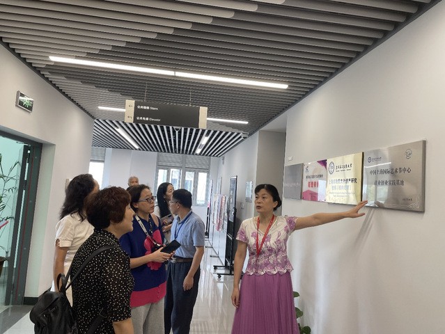 会后,教育学院一行参观了二工大文理学院的教学场地和实践基地,尤其是“厚生厚德”、“自然之光”、“银色讲堂”、“半亩方塘”系列讲座的举办场地。同时走访了上海第二工业大学的艺术教育中心。中心成立于2015年,以大学生艺术团建设、通识教育教学以及校园文艺文化活动为主,整合校内外的美育教学资源,开设音乐、舞蹈、美术、艺术理论、戏剧、戏曲、语言艺术等课程,其实践课程达到1/3,学生在全国大学生艺术展演等比赛活动中多次取得优异的成绩。