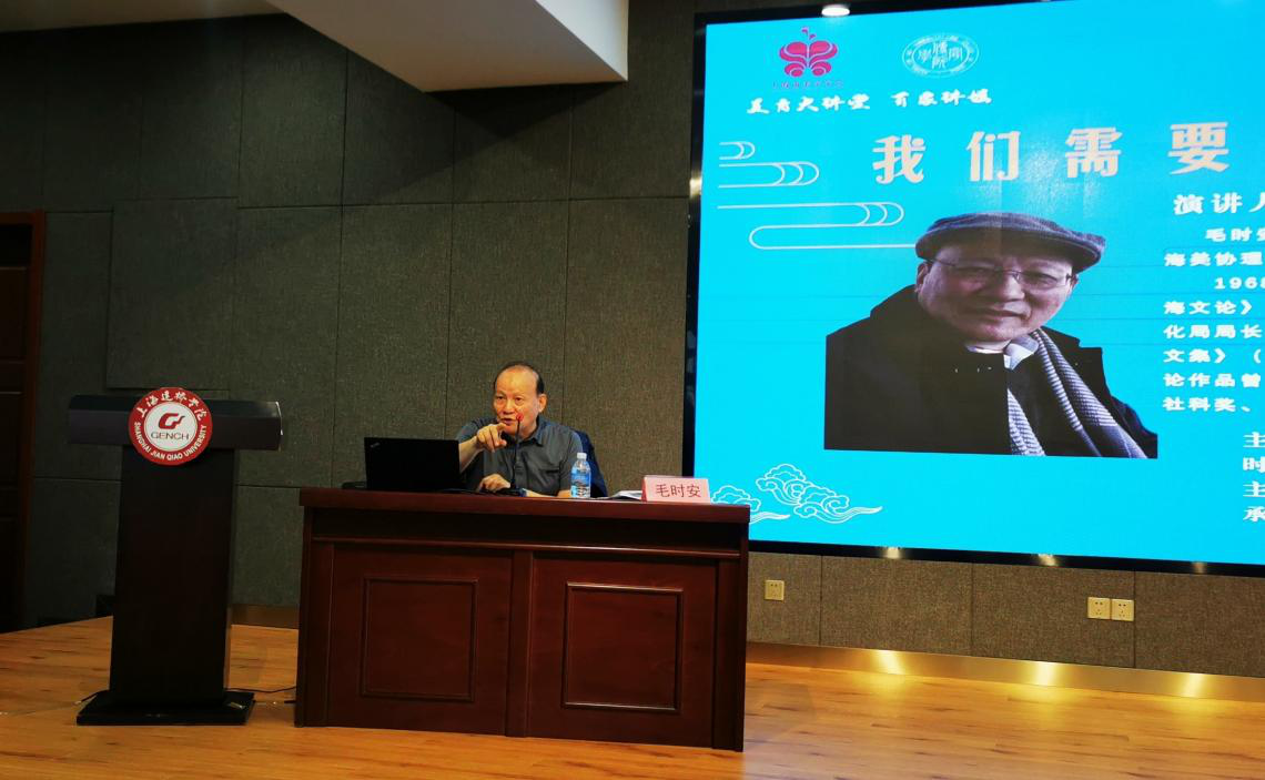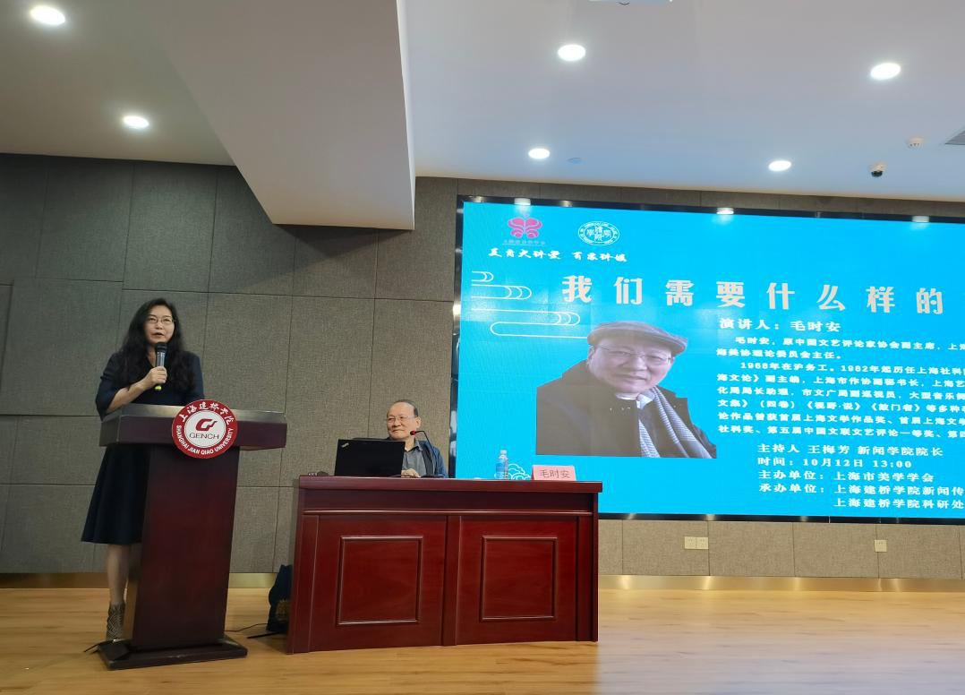 10月12日下午,上海建桥学院珠宝学院四楼报告厅座无虚席,二百多师生兴趣盎然地聆听着原中国文艺评论家协会副主席、上海美协理论委员会主任毛时安先生关于“我们需要什么样的美好艺术”的精彩演讲。这是一场关于美之价值、美之心灵、美之人性、美之社会生活的学术盛宴。