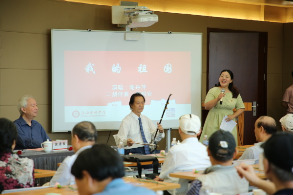 四个精彩的节目拉开了活动序幕。校合唱协会(校合唱团)谢丹萍和卞浩老师的歌唱、康明安老师的二胡和武杰峰老师的手风琴演奏优美动听,余音绕梁,整个会场沉醉其中。最后在四位老师的带领下,全场齐唱《没有共产党就没有新中国》,将气氛推上了高潮。