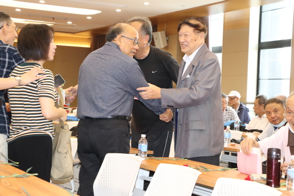 会场为老同志们准备了每人一支鲜花和一张2020年回校参加20周年校庆的大合照,老同志们倍感温暖,与校领导们握手寒暄,与老朋友们拥抱叙旧,会场一片热闹非凡、其乐融融的景象。