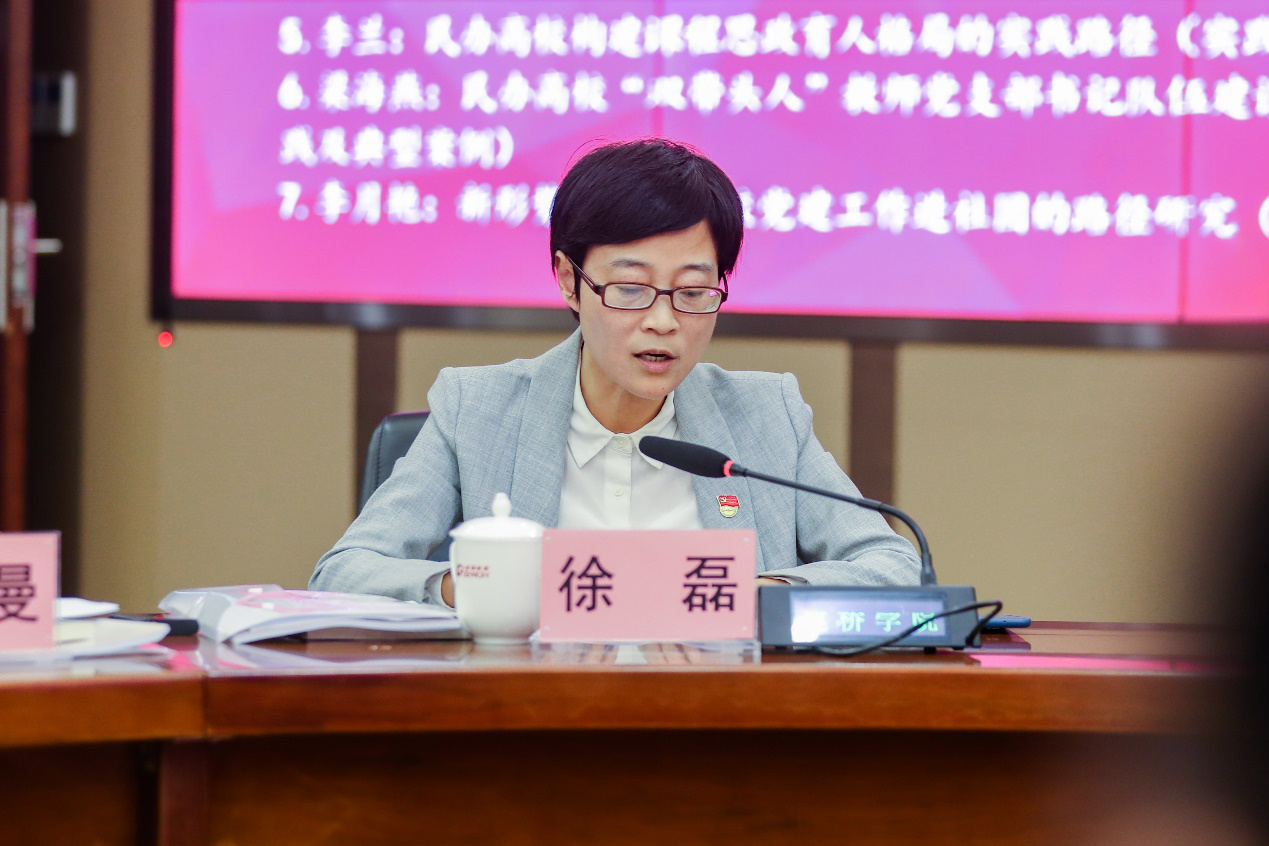立项2021年民办高校党建与思政研究中心立项专题研究课题的胡银平老师就“四史”融入民办高校大学生思想政治教育的路径研究”进行了发言,并强调立项选择标题方面要注意从细处着手,阐述了自身课题研究中存在的一些困惑,比如研究时间段,自身理论概况水平不够等;立项同类课题实践及典型案例的徐磊老师就“全媒体时代,应用型本科院校新闻传播课程群思政教育研究“进行了发言,提到本项目支撑法规比较少,行业法规和行业辐射和影响力不够,实践转化成理论成功的路径较狭隘等问题;李兰老师就“民办高校构建课程思政育人格局的实践路径”进行了发言,并表示在研究过程中要不断转变自身,在形式上和格局上进行创新,申报时要有基本的学术知识点和研究点;梁海燕老师就“民办高校‘双带头人’教师党支部书记队伍建设典型案例研究”进行了发言,并表示项目研究要充分利用日常工作基础,加强理论功底的夯实;李月艳老师发言主题是“新形势下民办高校党建工作进社团的路径研究”,表示该项目选择比较新颖,因此在查找资料时比较难找,在调研方法上比较薄弱。