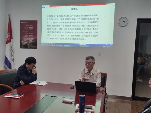 王加宁书记强调,现代教育要传承孔子的“仁义立身”和陶行知的“爱满天下”理念,引导学生向上、向前、向善,关注学生的精神成长,使学生成为独特的精神自我与有活力的生命个体。教书育人,重在育人,育人离不开师德,师德应是一根红线,贯穿于师资队伍建设的始终,这既是对教师工作个体性质的把关,也是对教师工作影响长远性质的守望。王加宁书记引用古代思想家孔子、德国教育家福禄贝尔及学校董事长周星增的教育言论,强调教育要以生为本,爱生乐教。列举谭千秋、严蓉、张桂梅等先进典型事迹,他强调,有以上这些先进榜样在前引路,有持续开展的师德师风学习教育活动,有我们教师平时的学悟践行,有学院“时刻把学生的冷暖放在心上”的召唤,学院大多数老师的师德师风,都表现出了积极的和良好的一面,学院各单位涌现了一批先进典型。
