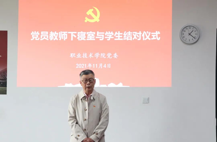 王加宁书记讲话指出,职业技术学院党委始终秉持“一切为了学生”的初心,持续开展“党员教师下寝室,和学生争做一家人”的活动,至今进入第六个年头,充分贯彻了学院党委“时刻把学生冷暖放心上”的工作方向。职业技术学院党委坚持贯彻党的理念与党史知识相结合,落实到群众中去,办难事做实事,将爱心落实在学生个人身上,将党建工作落实到人、学生管理工作落实到心,更加夯实课程思政立德树人的教育初心,共同红心向党,奔向远方。