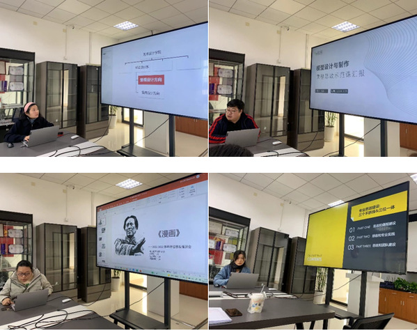 孟庆涛、蔡燕婕、刘冰、徐哲晖四位教师,分别展示了各自《文创产品设计》、《景观设计史》、《模型设计与制作》、《漫画》的课程思政示范课。