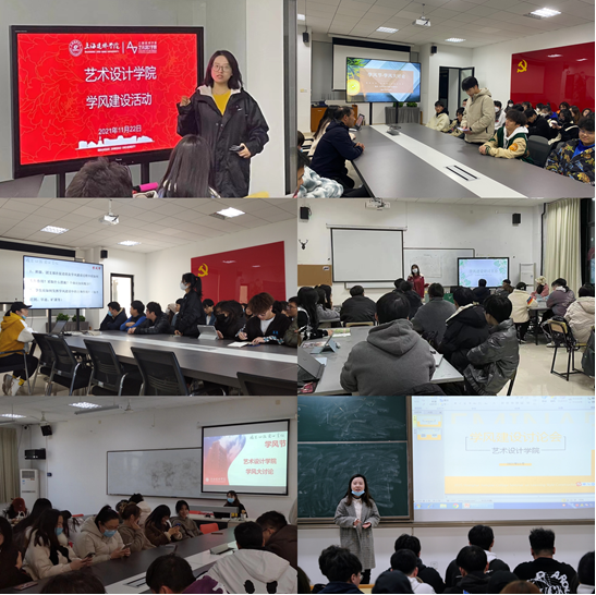 为进一步弘扬学校“爱国、励志、求真、力行”学风精神,深入探讨如何激发学生学习的积极性和主动性,强化学生的自律意识,营造严谨踏实、奋发向上的学习氛围。11月23日、24日,艺术设计学院采取线上和线下相结合的方式,以班级为单位开展学风节系列活动之“学风大讨论”,活动由各专业班级辅导员主持,学院全体学生参加。