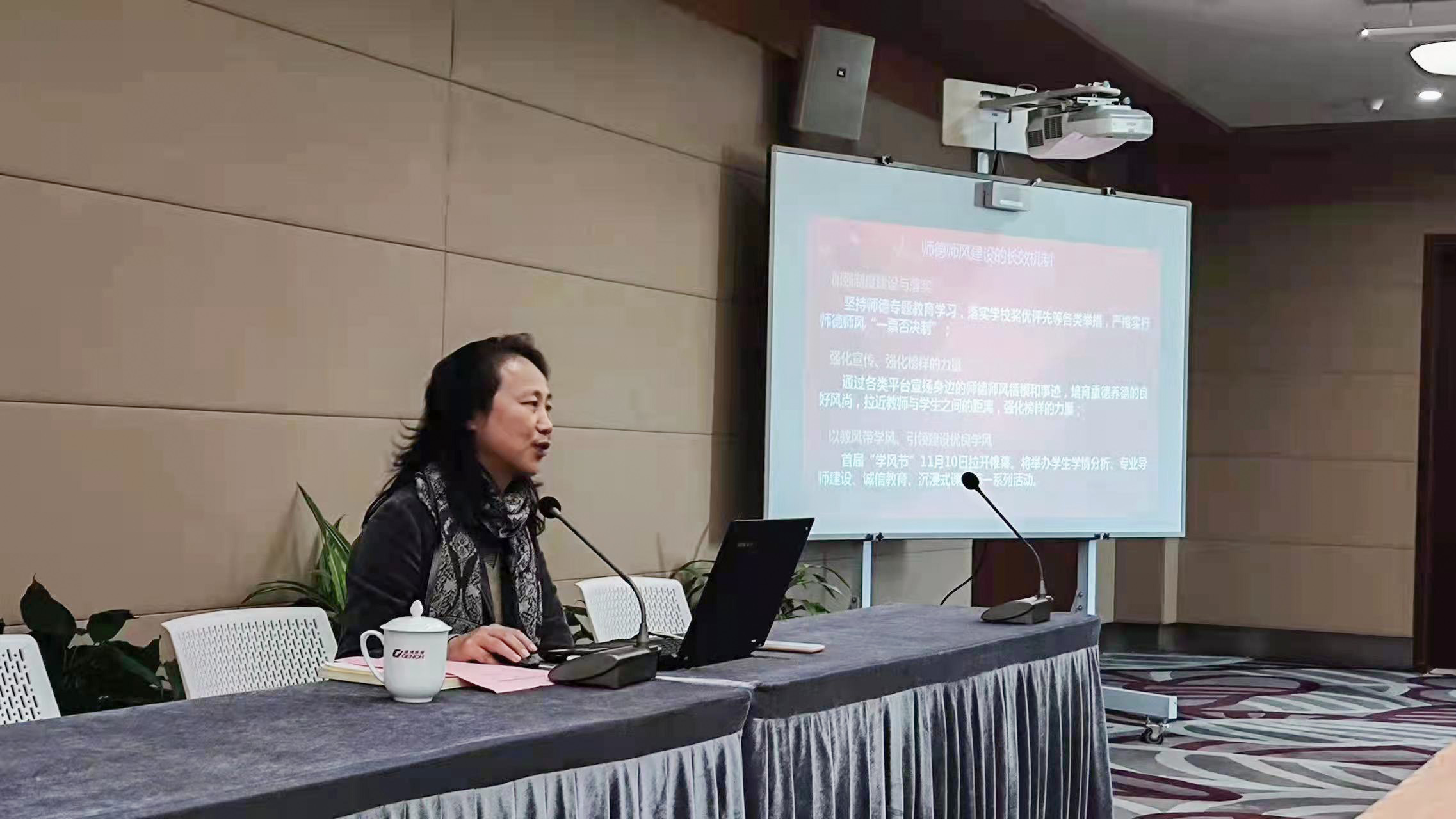 11月25日下午,教育学院(通识教育学院)于M617召开了师德专题教育总结会,会议由总支书记周荣玲主持,全体教职员工参加了会议。大会分李玢教授谈师德、院长解读沉浸式课堂专项计划、教师代表交流发言、系部室特色案例交流、以及书记总结五个部分。