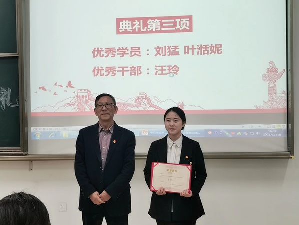 11月18日下午,珠宝学院第12期中级党校结业典礼于二教204顺利举行。本次典礼由珠宝学院党建中心严靖文同学主持,珠宝学院党总支书记张维生、院长刘衔宇、党总支副书记张晓寅出席,学生党支部书记唐婷玉、宣传委员吴文雯、组织委员董蕊,辅导员周鑫、焦丽以及第12期中级党校全体学员参加。