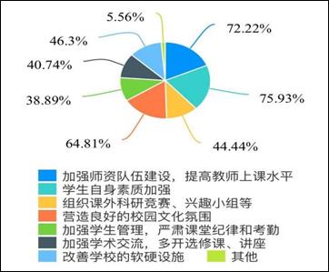 此外,通过分析各专业发放的学风建设问卷的数据,发现同学们大都认可学风建设的重要性,并且愿意和班委、老师一起建设优良班风学风。在“个人和集体如何做才能达到优良的校风和学风”中,75.93%的同学认为要加强自身素质,也体现了学生对于学风建设本质的认识。