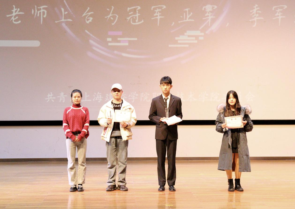 11月23日,职业技术学院在学校大礼堂举办2021-2022学年十大歌手复赛。学院分团委书记刘梦影,辅导员陆融、李艳妮、龚敬雅、杨俊情、张曼、庞雪雅、廖艺晗,学院团学文艺部部长袁睿,2021年校十大歌手冠军沈诗羽,2021年校十大歌手亚军余璐以及院团学各部门23位大众评审担任比赛评委。