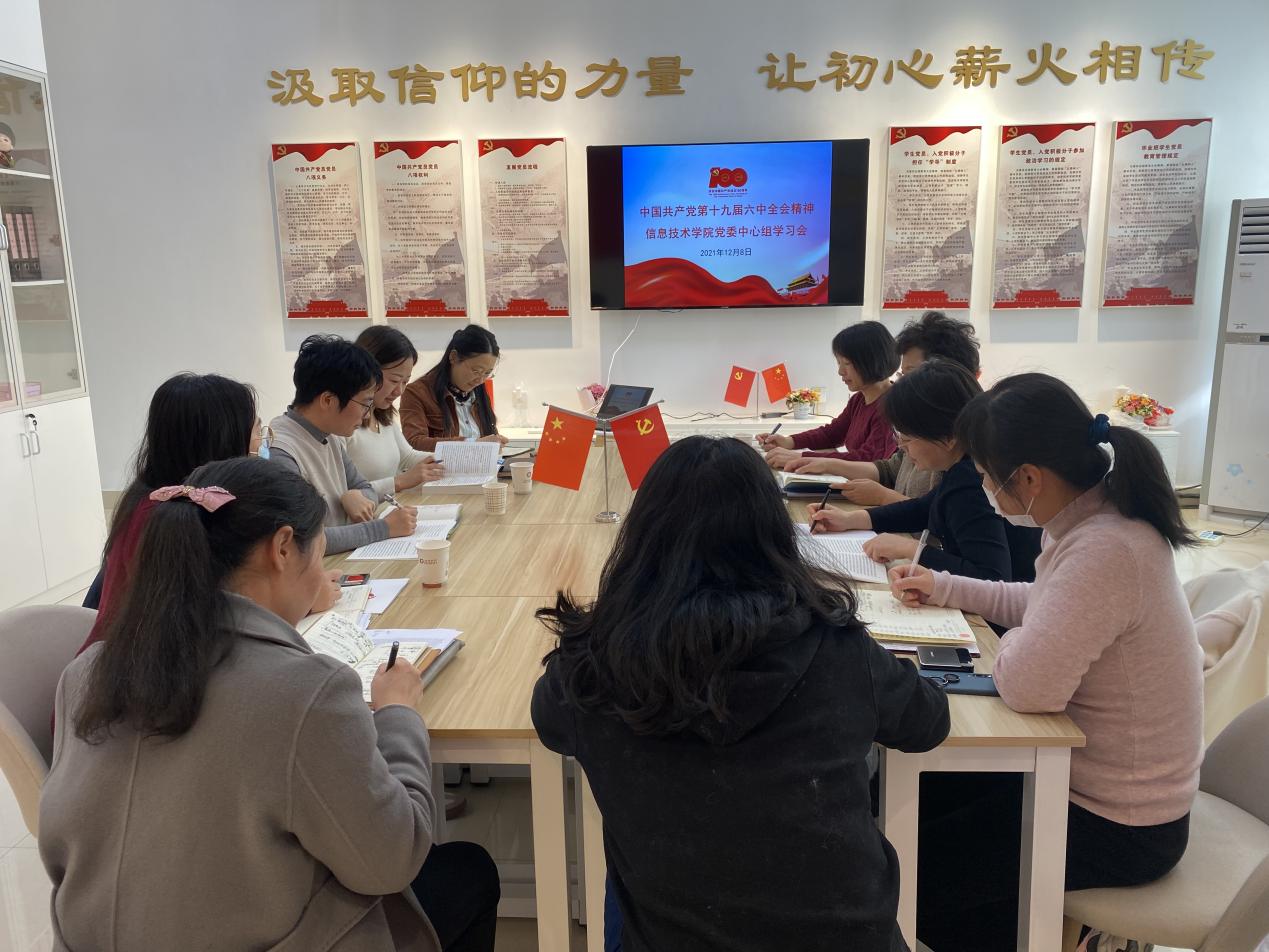 12月8日,信息技术学院党委中心组学习会在信息技术学院党建中心召开,专题学习中国共产党第十九届六中全会精神。学院党委书记王晨岑主持会议并讲话,中心组成员徐娜、章连英、高祺、陈莲君、朱丽娟、蒋玮荻、蒋中云、张娜娜、苗婉茹参加学习。