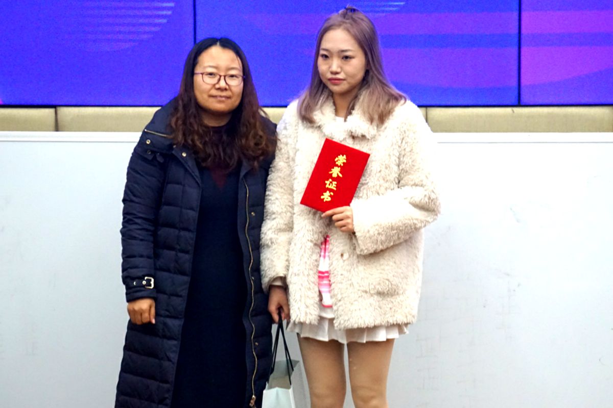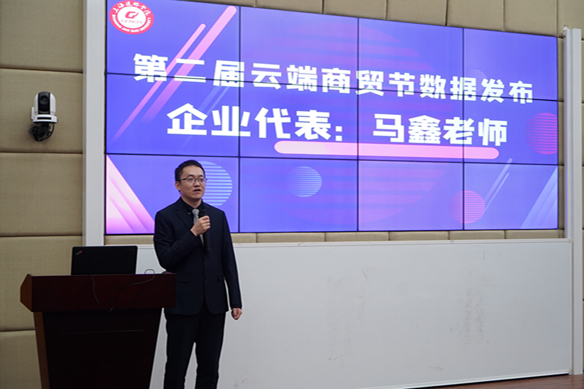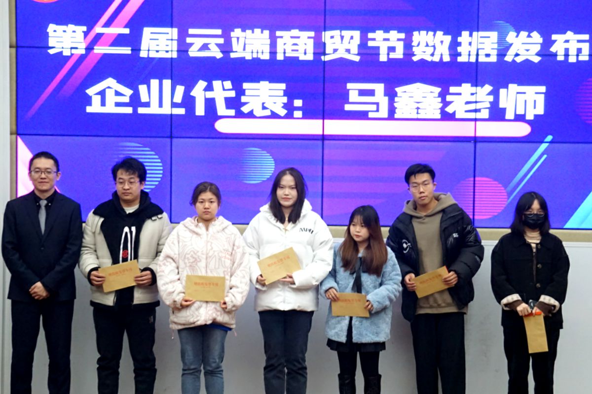 企业代表马鑫介绍了第二届云端商贸节暨直播电商创业实战PK赛总体情况,宣布了《直播电商创新创业实战》课程积分累计情况,并向六位团队代表颁发了佣金及奖金。