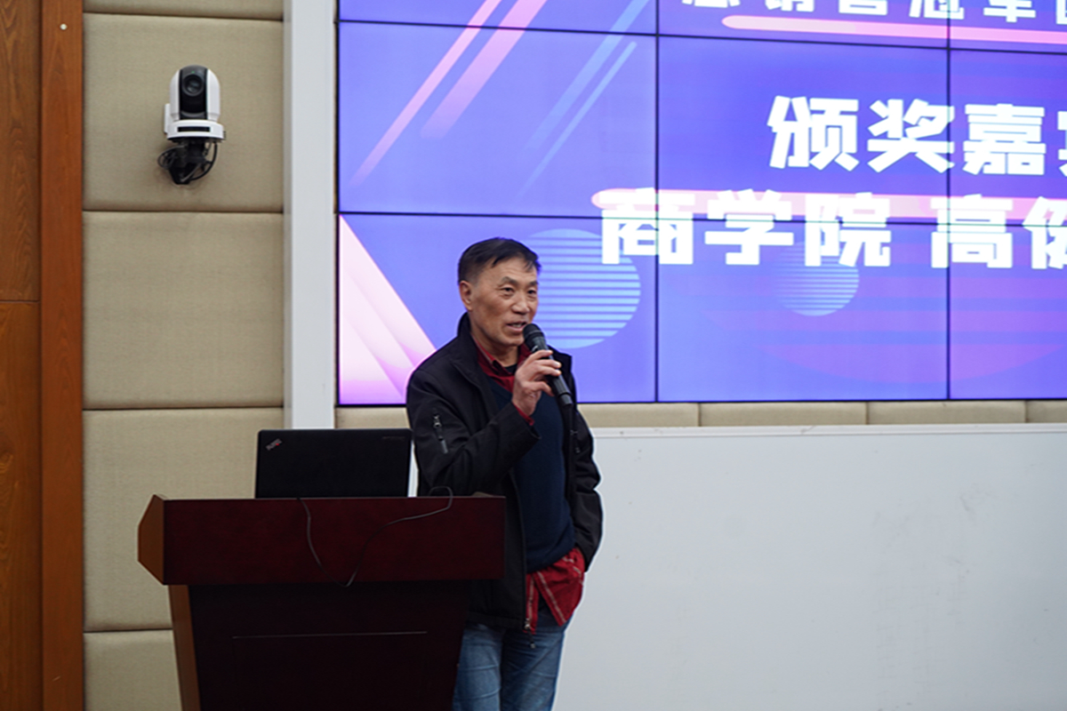 高健发表致辞并为本次比赛的总销售冠军团队——建桥干饭姐妹花颁奖,商学院电子商务系主任张江老师发表致辞并为优秀团队芋泥波波、机智的生活、猪仔零食小铺颁奖。高健院长从核心素养、能力本位、成果导向、持续改进的培养理念出发对本次比赛做出总结,对本次参与比赛同学们的成绩表示肯定,并表达对下届云端商贸节暨直播电商创业实战PK赛的期许。大赛优秀个人唐雨欣、丁扬阳、彭李、霍彦坤、刘慧婷、阚纪云、谢雨欣、王泽萱、印钰恬、车铁宇、杨伟、杨文硕、胡琦优等同学上台领奖。