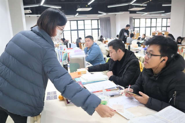 12月22日,在商学院党委副书记俞海燕的带领下,商学院党团组织负责教师杨敏、马璐璐,考证考研指导中心教师陆军、蔡选超一行来到24小时自修教室慰问即将考研的商院学子,为他们送上祝福卡片及真挚的祝福。