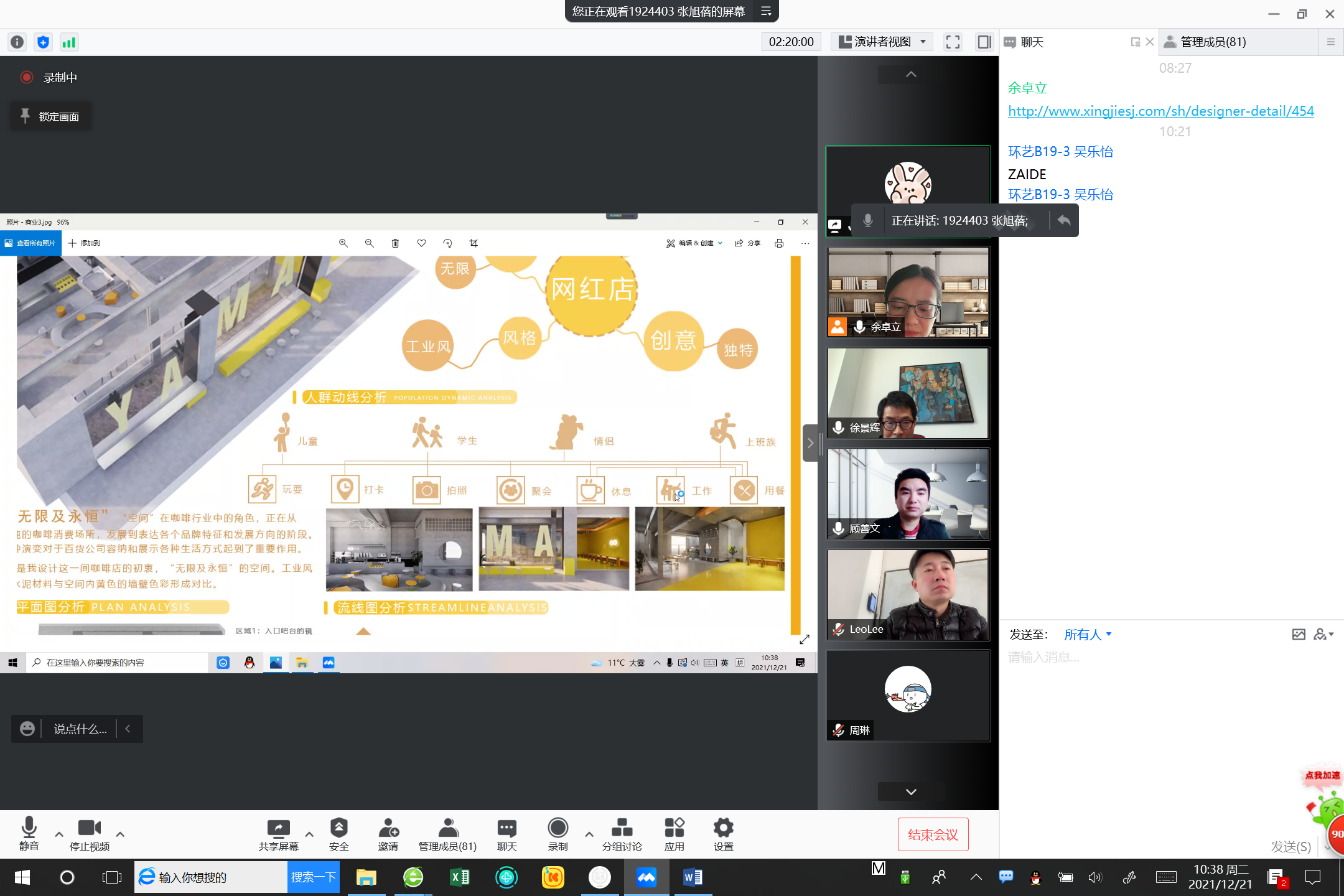 12月21日上午,艺术设计学院环境设计系通过腾讯会议组织举办《商业空间室内设计》、《办公空间设计》两门专业课程的期末评图活动,此次校企联合“云评图”针对环境2019级室内设计专业方向的大三学生,它是在疫情背景下深入开展校企合作、进行隔空研讨的一次积极探索,同时也为这些即将升入大四的学生实习和就业提前建立桥梁。