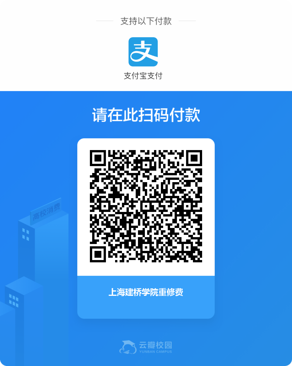 按照学校学籍管理规定,学校从2017级开始收取学生课程重修费用(办理延长学期学生无需再次缴费)。缴费时间为2月28日-3月6日,缴费金额以教务系统显示金额为准,未在规定时间内完成缴费将做退课处理,学生缴费请用支付宝扫描二维码: