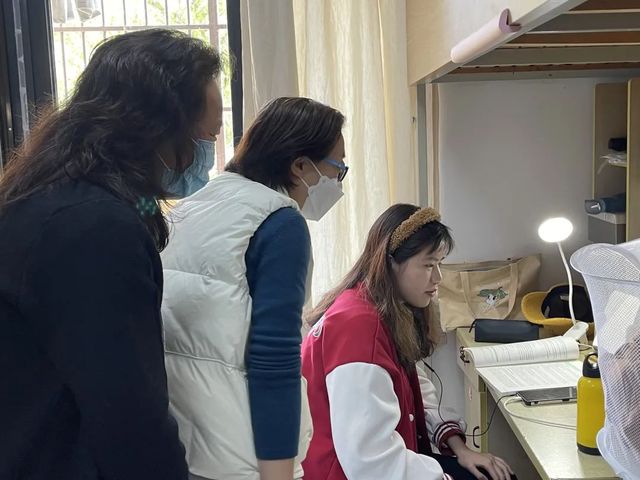 当然,得知此消息后,一些可爱的同学们也开始相继行动起来:打扫寝室,收拾书桌,整理“着装”。迎接老师时,他们也乐于互动,主动展示自己的学习情况,能看出有一些慌张但也十分认真。