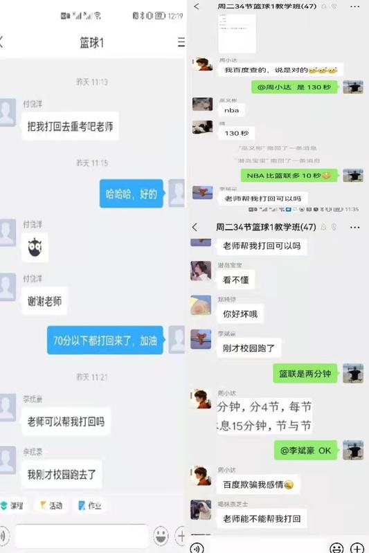具体地,体育教学部教师通过模拟组建班级,在教师和学生角色中不停转换,力求以最快的速度掌握超星学习通教学平台,尽可能提升线上体育教学质量。线上体育教学前,认真备课,准备课件,提前检查网络、电脑和手机等线上教学工具,提醒学生按时签到。线上教学中,提前利用微信沟通群和班级同学及时沟通,发布本节课的教学内容,发布四周线上体育教学注意事项,在注意事项中充分考虑到特殊情况下学生居住环境可能不同,针对此情况制定了多种锻炼和评价方式,并在课上认真解读,对学生的问题及时解答,保证了每位同学无论处在什么环境下都可以进行锻炼,并且评分标准一致,相对保证了公平原则,打消了同学们的疑虑。除了对体育课线上教学注意事项进行详细解答以外,还对锻炼时的时间、场地、着装等提出了明确的要求,把运动风险降到最低;同时注重课程思政,及时调整学生的心理状态,建议用适度锻炼来改善可能在疫情下出现的抑郁等心理问题,保持良好生理和心理双健康。上课过程中,通过运动世界APP课外任务后台监控,及时了解学生的课外锻炼情况。课后结合本节课内容,安排相关作业,对学生提交的作业及时给予反馈和评价。