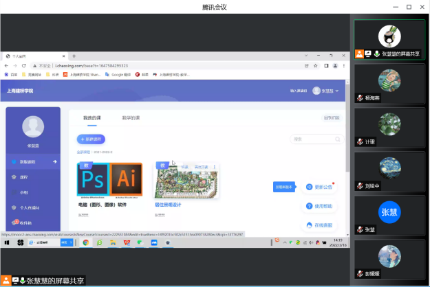 会议首先对近期线上教学的优点、不足,以及解决问题的方式进行探讨。潘苏水、余卓立、潘家宽、尚晓倩等教师根据本周各自班级线上教学情况,对教学平台的应用、线上互动与控班的技巧、使用优缺点及线上课程的沟通技巧进行了交流与相关应用的技术讨论。此外,刘冰老师对线上教学中如何引入思政环节与大家分享了自己的教学经验。系主任张慧慧根据大家出现的普遍共性问题,示范并展示了超星教学平台的操作要点与使用方法,分享了自己的应用心得,解答了老师们提出的相关的操作问题。