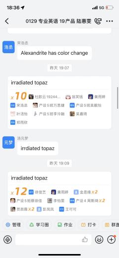《专业英语》课程总结及改进:在授课中,因考虑到产品专业同学的英语基础扎实程度有限,且能力差距较大,因此选取的提问问题更多较为基本,在问到难度较大的问题时,学生的热情较少,能回答的寥寥无几,因此针对宝石基础知识较难的部分,之后将先用中文为大家复习一遍作提示,然后让学生进行回答,效果会更好。在钉钉群内让学生回答问题的时候,很多学生都是直接采取复制第一位同学答案的情况,因此今后在钉钉群内将更多地以开放性问题为主邀请学生回答,这样答案更多样化,学生才能真正进行思考。