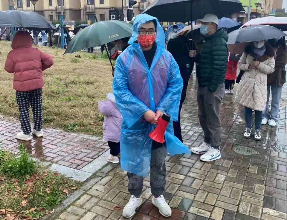 “在此疫情防控紧要关头,作为一名教师党员,在担当好本职工作,应对全面线上教学带来的教学资源准备、教学方式转变等挑战,保质保量完成教学工作之余,我积极参加了所在社区(宜浩欧景一居委)组织的志愿者活动。3月20日小区全员核酸检测,瓢泼大雨,气温骤降,志愿服务工作中有疲惫、有酸痛,但内心感觉非常温暖。能为社区居民服务,感到由衷的开心。后续还将继续积极参加相关志愿者活动,为基层防疫奉献一份力量,希望本轮疫情早日过去。