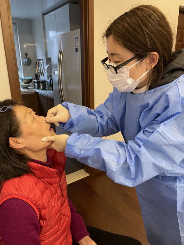 在她给自己全家抗原测定过全部阴性后,新冠抗原测试工作终于可以开始了。她认真仔细地核对所负责单元的住户信息,有些住户家里没人,她就打业主电话,确认是长期不归,还是房屋空置;有些住户有人出去了,她详细询问和记录返回时间,并希望对方能够及时赶回。在发放试剂盒时,遇到独居的老人,当老人表明需要帮忙后,她毫不犹豫地一边安抚老人,一边温柔地帮老人完成测定,并告诉老人后续医疗垃圾的处理方式。