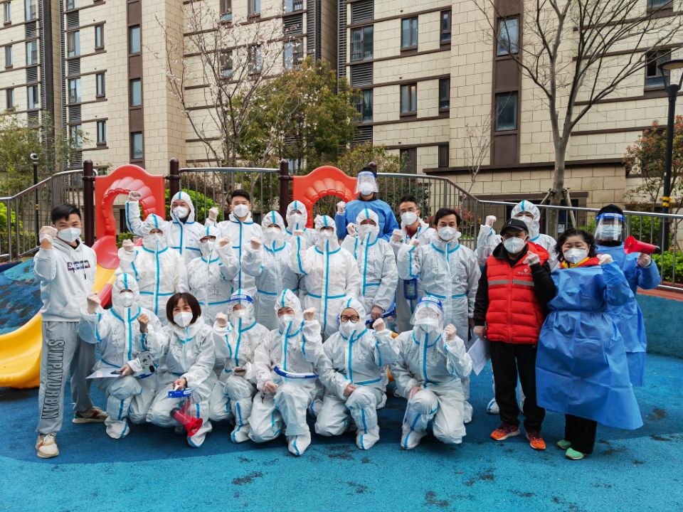 她第二次协助社区抗疫工作,是在浦东新区全区进入封控管理时,她由于有网课不能亲自参加,于是她给刚刚结束单位防疫工作回到家的老公报了名。他老公穿上了大白服,参与了小区4天2次的核酸测定工作,帮助医生布置检测场地、制定人流导流方案、在现场处理各种突发状况,直到小区2300人全部核酸检测完毕。她在网课结束后,也积极参与其中,为冲在前线的大白们出谋划策,优化方案。第一次核酸测定整个小区用了9个小时,第二次测定只用了5个小时。她和她老公的贡献,得到了居委和邻居们的一致称赞。