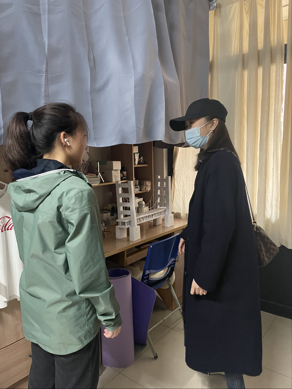 胡晨晨老师作为学院新进住楼辅导员,通过每天走访寝室,查看学生上课情况,了解学生校园生活,及时在沟通中为学生答疑解惑、排忧解难,把对学生的关心落实到末端。在学校宿舍网格化管理上,作为楼总管,主动压实责任,积极开展工作,建立辅导员、楼长、层长三级责任制,层层落实,深入寝室核查信息,做到楼层长晚点名与核酸采集信息一一对应,工作部署随学生流动情况及时更新与调整,为学院疫情防控工作的顺利开展建立起了强有力的组织保障。(供稿:艺术设计学院)