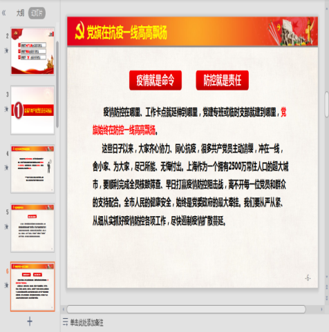 经过学习和交流,大家纷纷表示要坚定“共产党员先上”的政治自觉,以实际行动做到“一个党员一面旗”,让党员成为疫情防控中流砥柱,让党旗在抗疫一线高高飘扬。(供稿:国际教育学院)