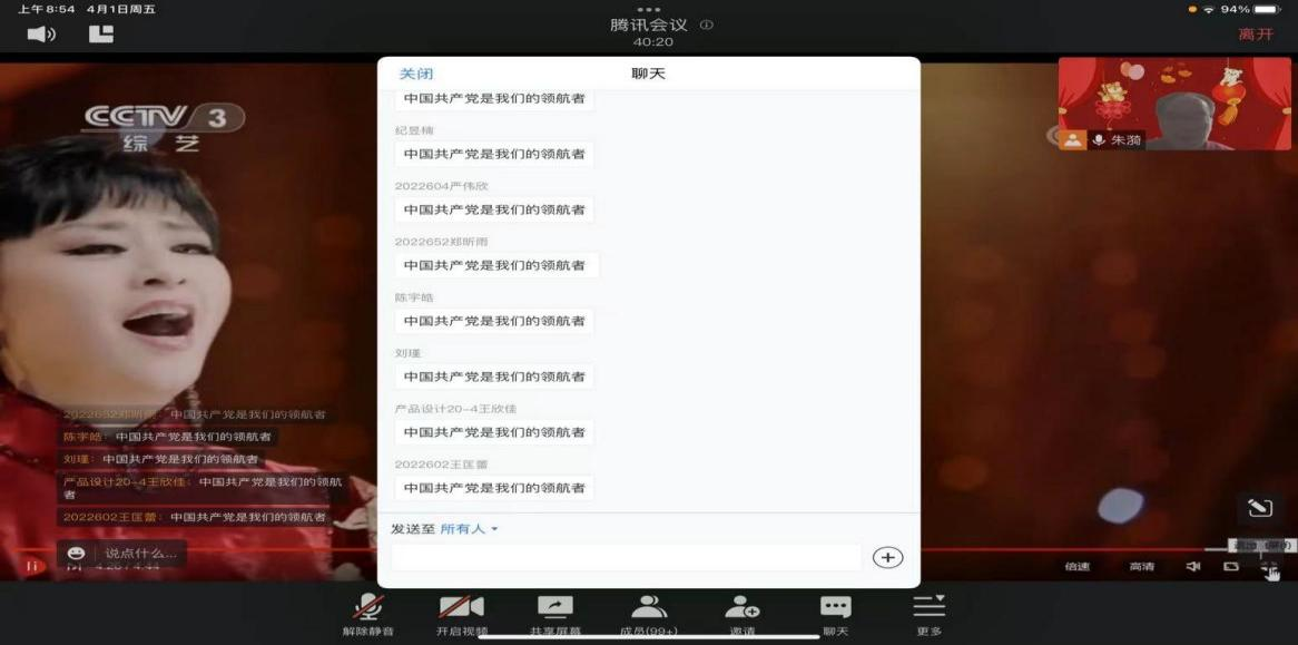 其次是学生主讲。朱漪教授将此环节分为学生点评时政新闻与学生主讲教材内容两部分。学生点评时政新闻部分由三人左右发言,并进行相应的加分;然后让每个学生在聊天区留言发言,并进行考勤;最后老师推荐一条重要新闻,并简要点评学生发言情况。学生主讲教材内容部分则是由朱漪教授提前布置主讲题目,学生以小组为单位提前备好课,他进行课件审阅;课中朱漪教授根据授课角度适时安排学生主讲教材某一内容。通过学生主讲环节,赋予了思政课堂生命力,提高了同学们的思辨能力,学生的主讲水平越来越高,而且某些方面比老师讲的还要出彩、有特色,整体效果很好。