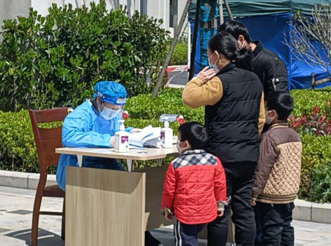 张校玮老师3月22日在居委报到参加抗疫志愿工作。完成教学任务的同时,协助居委党总支书记组织完成了310名党员“双报到”,并号召大家参加各项志愿者活动,包括抗原检测物资分发与结果回收、核酸检测、政府物资搬运分发、生活物资派送等。随着疫情吃紧,志愿者工作量加大。4月6日,张校玮老师向党组织提交了请战书,同时以更加饱满的热情,全身心投入到抗疫工作中。