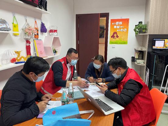 蒋中云老师与志愿者队友一起发放抗原检测物品