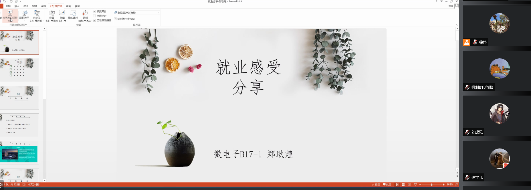 2021届毕业生代表郑耿煌介绍和分享了自身考研失利后积极投递简历、主动面试,最终在上海临港成功就业并落户的经历,鼓励同学们勇于实践,坚持梦想不放弃。支援祖国西部建设的毕业生代表黄富贵交流了他近一年来在新疆工作的所获所感,感谢母校的培养,鼓励同学们到祖国和人民最需要的地方去建功立业。