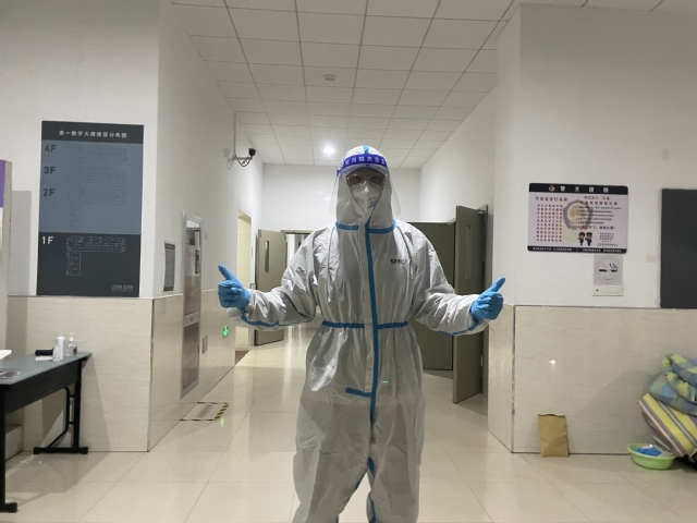 商学院组织委员杨敏表示:“疫情期间在校工作已有一月余,主要的工作是做好防疫宣传和学院的后勤保障,同时在这次的校园疫情防控工作中也参加了校突击队行动,冲在了防疫一线,从第一次穿上‘大白’服时的紧张到后来对行动的了然于心,我感受到骄傲和作为教师作为党员的责任,在校领导的指挥下我们的校园是安全的,在众多师生的共同努力下,我们的生活和学习是平静有序的,疫情终将过去,繁花必将如常。”