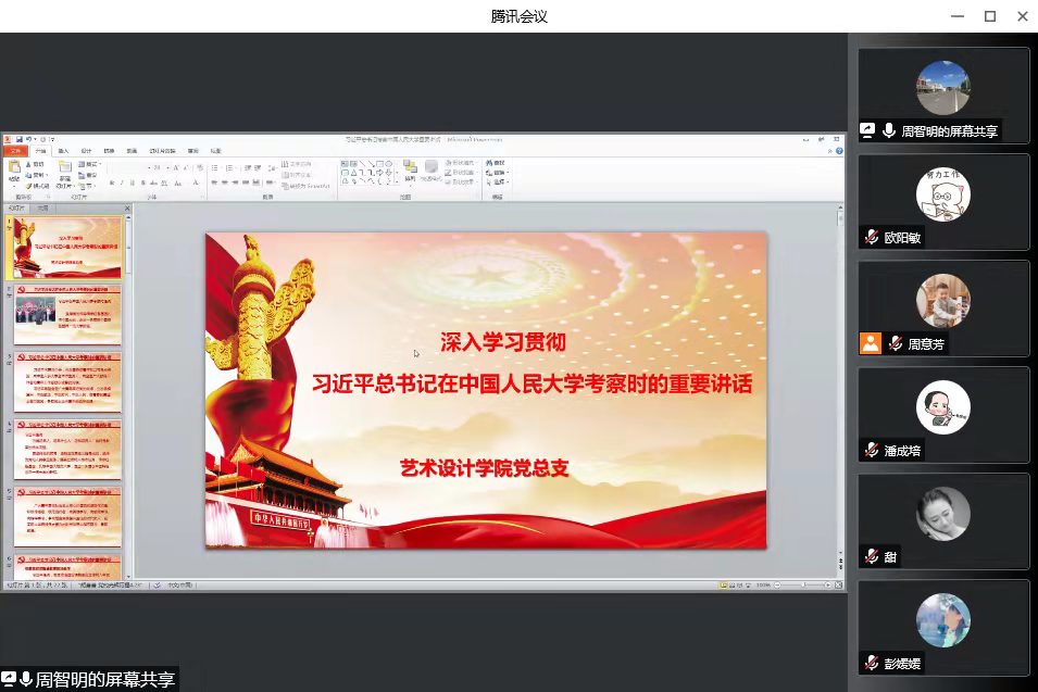 5月6日下午,艺术设计学院党总支召开线上教职工党员大会。会议由党总支书记周智明主持,葛洪波院长、王丽佳副书记及全体教职工党员参会,孙鹏副院长受邀列席会议。