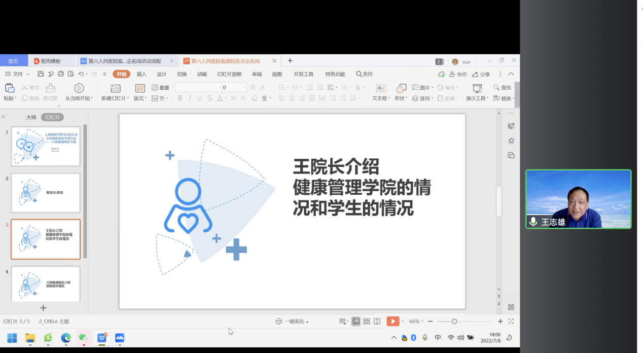 为加快健全毕业生市场化、社会化的就业创业工作机制,千方百计开拓更多就业创业岗位和机会,带动全员深度参与做好毕业生的就业工作,全力促进毕业生更加充分、更高质量的就业,同时全面深化与上海市第六人民医院(临港院区)的校企合作和供需对接。7月8日下午,健康管理学院开展线上“书记、校长访企拓岗促就业专项行动——上海市第六人民医院(临港院区)专场”活动。