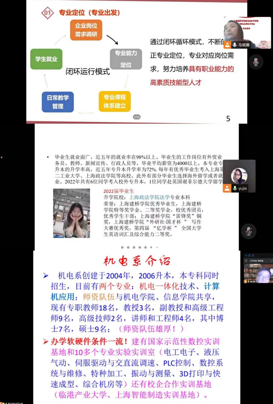 为让职业技术学院22级新生熟悉本专业,了解未来就业方向、前景。帮助新生确定职业发展目标,制定行动计划,充分发挥自身才能,职业技术学院于10月18日至19日通过腾讯会议召开系主任见面交流会,学院各系主任参加会议。