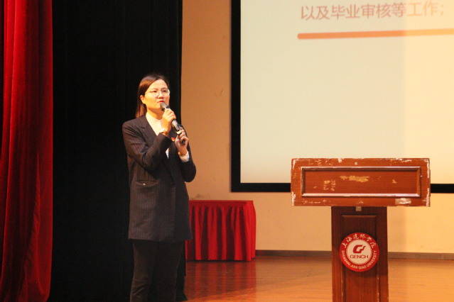 随后,尹卫华副院长就毕业环节相关要求为大家做了详细的解读。她表示完成学业是就业的前提,也是同学们迈向社会的第一步。圆满完成学业不是一件轻轻松松的事情,需要同学们在专业领域上下功夫;在相关证书上下功夫;在毕业论文和实习上下功夫。希望各位毕业班同学充分掌握自己的培养计划完成情况,利用最后的时间查漏补缺,尤其是学籍异动的同学更要加倍关注。