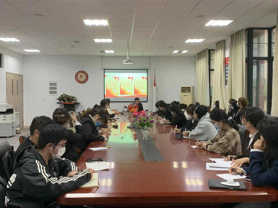 10月26日,外国语学院第一学生党支部在外院229召开组织生活会,专题学习贯彻党的二十大精神和《习近平谈治国理政第四卷》。会议由党支部书记赵磊主持,外国语学院党委副书记伊莉、组织委员彭艳虹、宣传委员方毓锦参会。