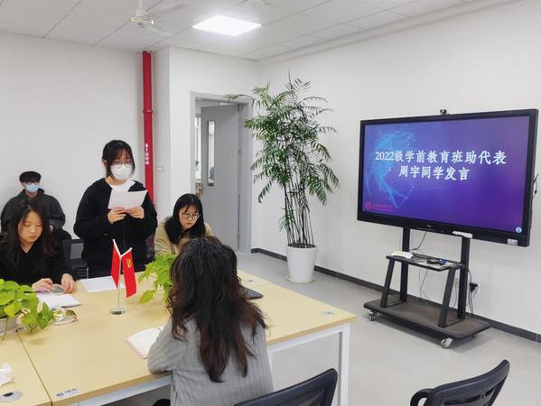 随后,2022级新生班级助理周宇代表全体班级助理发言,表示今后在班级事务中,会经常与辅导员和班级导师进行沟通汇报,架起教师与学生之间的桥梁,并在辅导员和班级导师的指导下开展工作,有针对性地对学生进行引导帮助和组织管理。