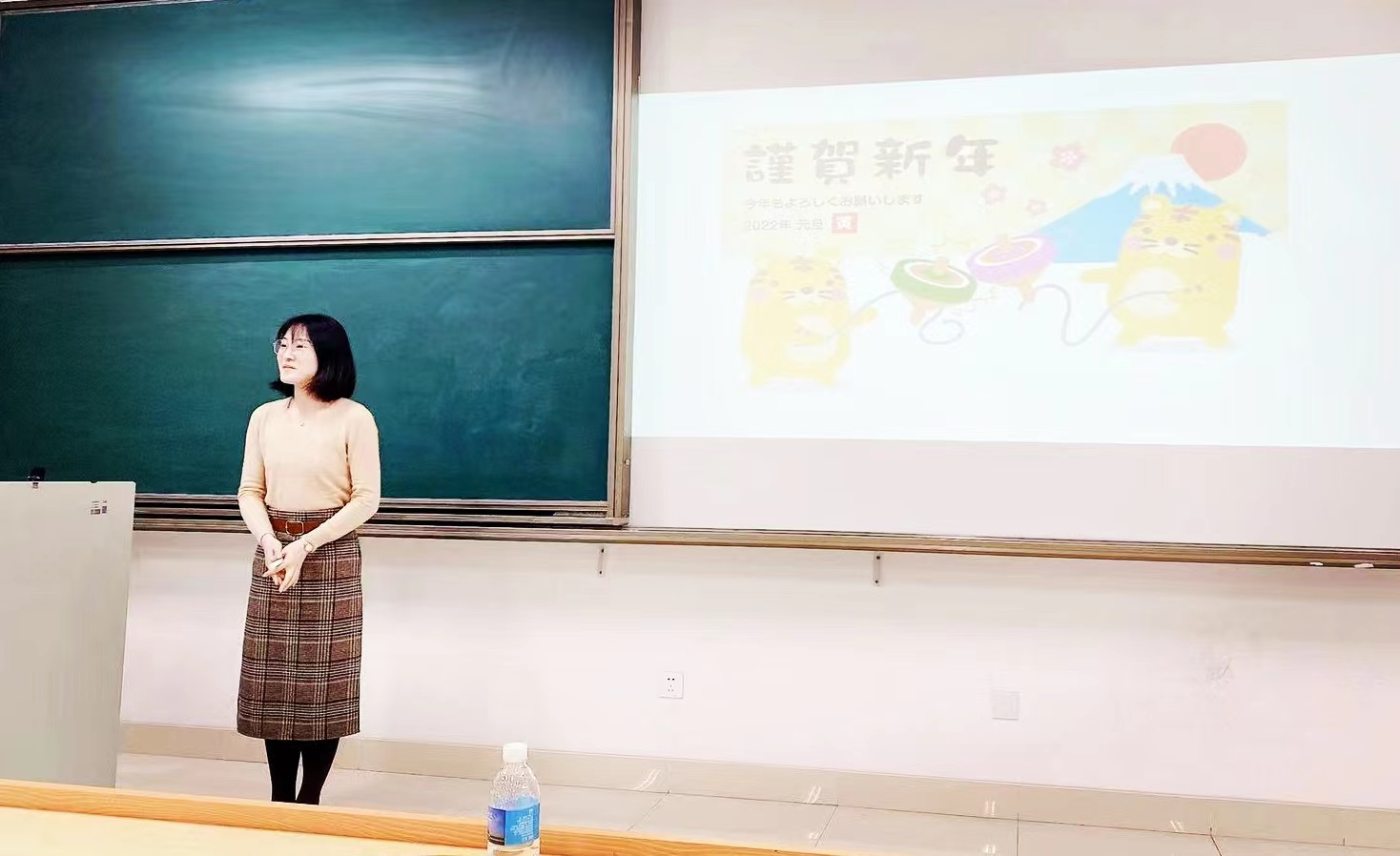 作为“教学节”的预热,同时也为教师教学竞赛提供示范,启动大会还安排了学院刚刚获得“第五届上海高校青年教师教学竞赛”人文科学组三等奖的贺亚茹老师为大家作教学展示。贺老师选取课文“新年”,围绕「てもの使い方」这一知识点进行讲解。贺老师从课程理念、教学设计、教学方法等方面详细诠释了“教什么?怎么教?”的问题,指出教师不仅要“上好一节课”,还要“讲好一门课”,更要“教好一学科”,重点强调每一堂课需关注“一个焦点”,给出“一个引子”,设计“一条线索”,提出“一串问题”,最后要引导学生积极开展“课程探索”,做到“专业性、前沿性、启发性、趣味性”有机融合,最终实现课程的“高阶性、创新性、挑战度”。